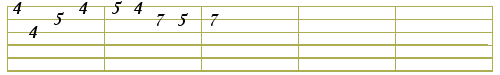 fourth note on third string, fifth note on second string, fourth note on first string, fifth fret on first string, fourth note on first string, seventh note on second string, fifth note on second string